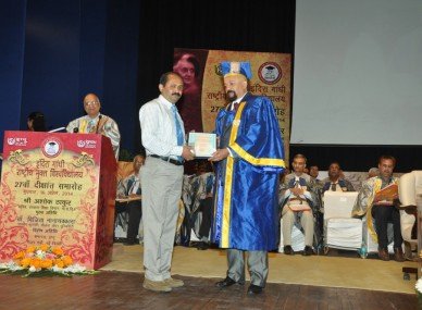Mr. Biswajit Mukherjee , Managing Director of ICA receiving “The Best Overseas Partner Institution 2014” for Best Services from the Guest of Honour Dr. Vijitha Nanayakkara, Vice Chancellor, the Open University of Sri Lanka at the 27th Convocation held on 16th April 2014 at IGNOU Head Quarters in New Delhi , India.